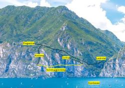Der Schmugglersteig ist ein schmales Felsband, das sich unterhalb der malerischen Ortschaft Pregasina wie mit dem Lineal gezogen durch die 200 Meter steil abfallende Westflanke am Gardasees zieht. Das horizontale Band wird gelegentlich durch senkrechte Einschnitte unterbrochen, wo man plötzlich den Boden unter den Füßen verliert. Hier sind eindrucksvolle Tiefblicke auf den Lago garantiert! Die Unternehmung ist mit einem Dolomiten-Klettersteig vergleichbar, der über weite Strecken entlang von Bändern führt.