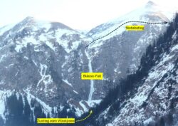 Wegen der südwestseitigen Lage ist es ratsam früh einzusteigen, da ab Mittag die Sonne in den Eisfall scheint. Softeis, fließendes Wasser und Eisschlag können die Folge sein. Deshalb ist es evtl. besser bei bedecktem Himmel und Minusgraden vorort zu sein. Generell gilt es schnell unterwegs zu sein, um nicht in die Dunkelheit der Monate Januar und Februar zu geraten. Ab März wird es immer schieriger, den Blässe-Fall zu begehen …