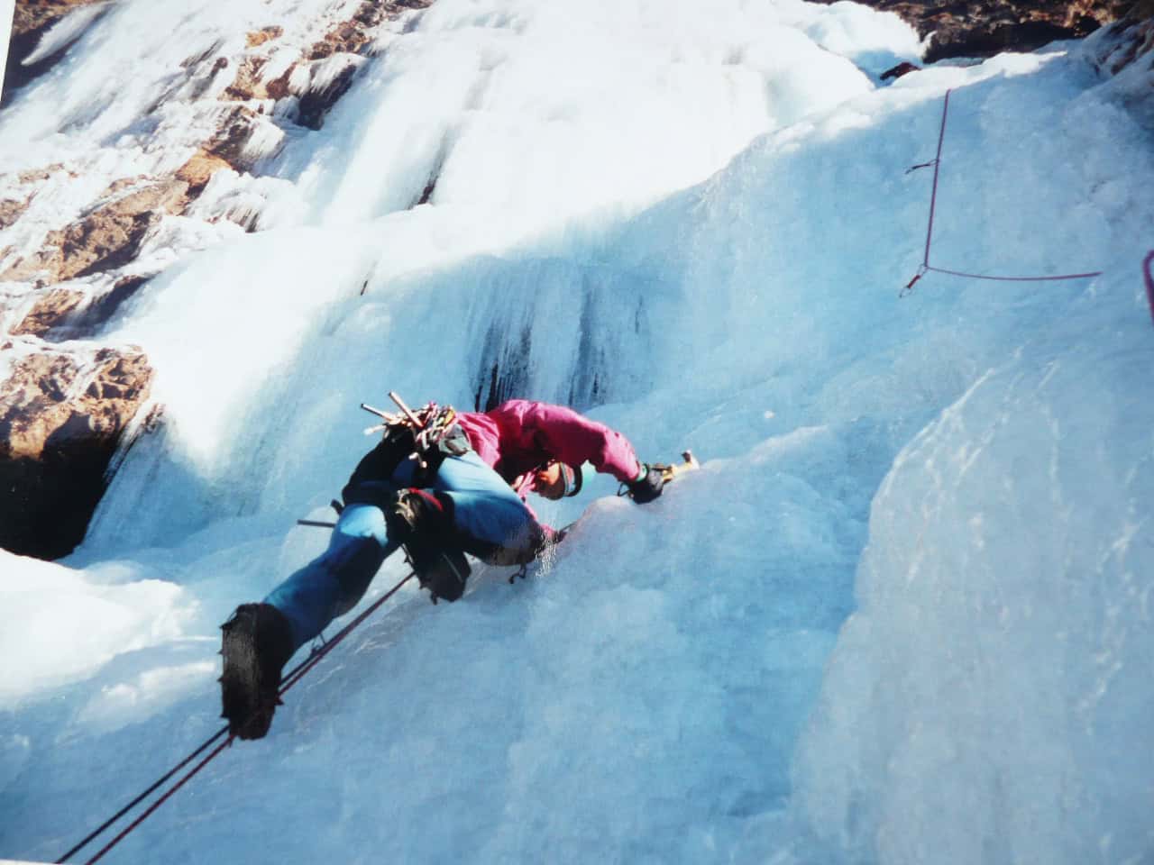 Der Eisfall muss mit Eisschrauben abgesichert werden