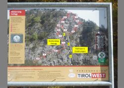 Am Ausstieg hat man einen schönen Ausblick über den Landecker Talkessel und eine Bank lädt zu einer kurzen Rast ein. Hier können auch die Burschlwand samt darüberliegende Hasliwand auf der anderen Talseite studiert werden.