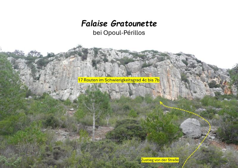 Wer seinen Kletterurlaub in Südfrankreich bei Tautavel bzw. Vingrau verbringt, sollte es nicht verpassen den Gebieten „Les Abeilles und Falaise Gratounette“ einen Besuch abzustatten. Man fährt nicht weit dorthin und die beiden Klettergärten bieten eine Vielzahl lohnender Routen in den mittleren Schwierigkeitsgraden. Es lohnt sich, für jedes Gebiet jeweils einen Tag einzuplanen. Die ganze Gegend ist landschaftlich sehr reizvoll von der Maccia umgeben. Außerdem kann im Anschluss die aussichtsreiche Burg von Opoul-Périllos besichtigt werden.