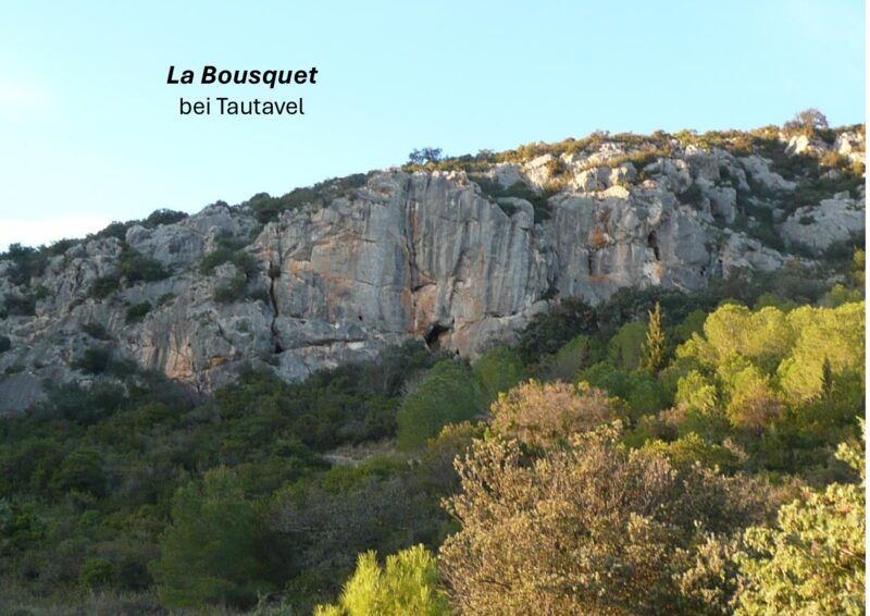 Der aussichtsreiche breitgezogene Berg über Tautavel bietet sich für Ruhetage oder unsicherem Wetter an. Am Ortsrand von Tautavel führen enge Pfade durch’s Gestrüpp. Für die Wanderung benötigt man gut eine Stunde.