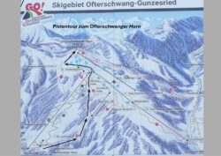 An der Bergstation des Weltcup-Express geht es dann etwas lebhafter zur. Hier kann entlang eines Ziehwegs die Piste nach links verlassen werden. An einer Almhütte vorbei, durchschreitet man letztendlich noch etwas ruhiges Tourenambiente um das Ofterschwanger Horn, dem nördlichsten Gipfel der Hörnergruppe, zu erreichen.