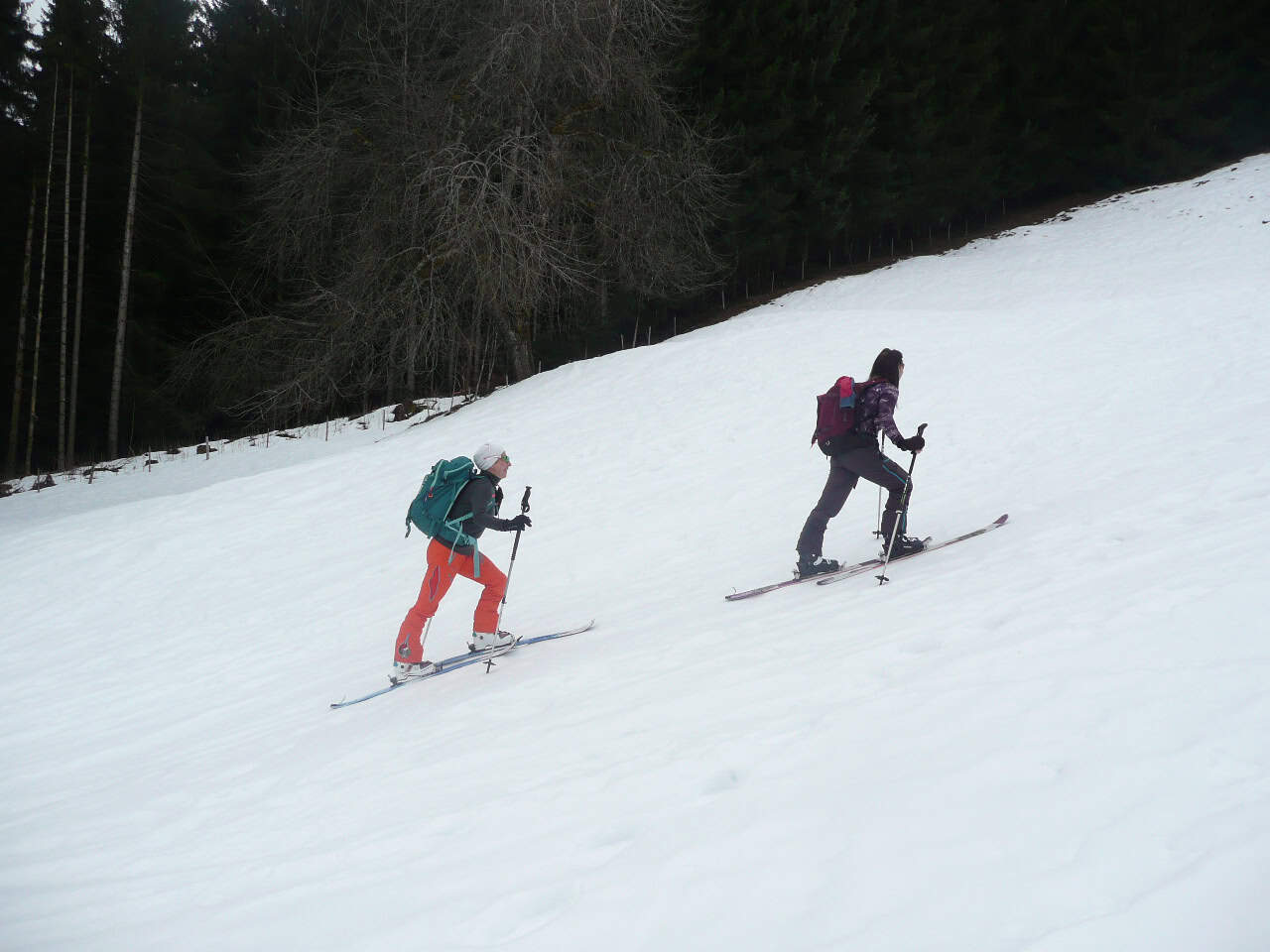 Es handelt sich um eine einfache Skitour entlang der Skipiste und wahlweise durch gelegentliche Waldschneisen