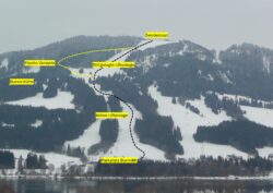Am äußersten Nordrand der Allgäuer Alpen befinden sich die Buronlifte bei Wertach. Die obere Sektion der Liftanlage ist aktuell (2026) abgeschaltet, was den Tourengehern besonders entgegen kommt. Die Skitour ist zwar nicht besonders spektakulär und lang, aber gerade bei unsicheren Lawinenverhältnissen ist der Aufstieg zu einem Bergrücken samt Sendemasten ein willkommes Ziel.
