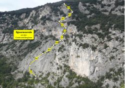 Die „Sguarauunda“ (was immer das heißen mag) zählt sicher zu den modernen Klassikern im Sarcatal. Sie ist sehr abwechslungsreich, oft fordernd und durch Charakter- und Richtungsänderungen nie langweilig. Trotz zahlreicher Begehungen ist der Fels noch kaum speckig und die arco-übliche Botanik hält sich in Grenzen. Der Abstieg über den klettersteig-ähnlichen „Sientero Scaloni“ rundet die gesamte Unternehmung schön ab.