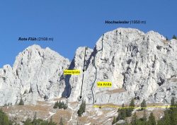 Bei der „Via Anita“ handelt es sich um eine sehr homogene Genuss-Kletterei in den unteren bis mittleren Schwierigkeitsgraden. Am Ende der Tour gibt es als Zugabe noch eine schwindelerregende 40 Meter frei hängende Abseilfahrt. Wenn die Nordseiten bereits eingeschneit sind, kann hier wegen der südseitigen Lage bis spät in’s Jahr hinein geklettert werden. Die Route erinnert an Anita Fendt-Burkhart, die bei der Erstbegehung mitwirken sollte, davor im Karakorum jedoch von einer Eislawine getroffen wurde.