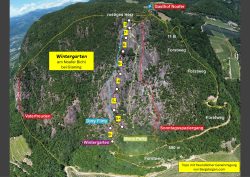 Kein geringerer als der bekannte Dolomiten- und Arco-Erschließer Roly Galvagni hat hier 2021 den Bohrer angesetzt. Es muss eine Heidenarbeit gewesen sein, große Flächen an Moos bzw. Flechten zu entfernen um am unübersichtlichen Noafer Bichl den „Wintergarten“ einzurichten. Man klettert hier in einem Labyrinth aus plattigen Aufschwüngen, eingebettet von allerhand Botanik. Galvagni ist es jedoch gelungen, die besten Kletterpassagen im linken Wandbereich zu einer gelungenen Linie übereinander zu reihen. Entstanden ist dabei die längste und zugleich schwierigste Route am Noafer Bichl.